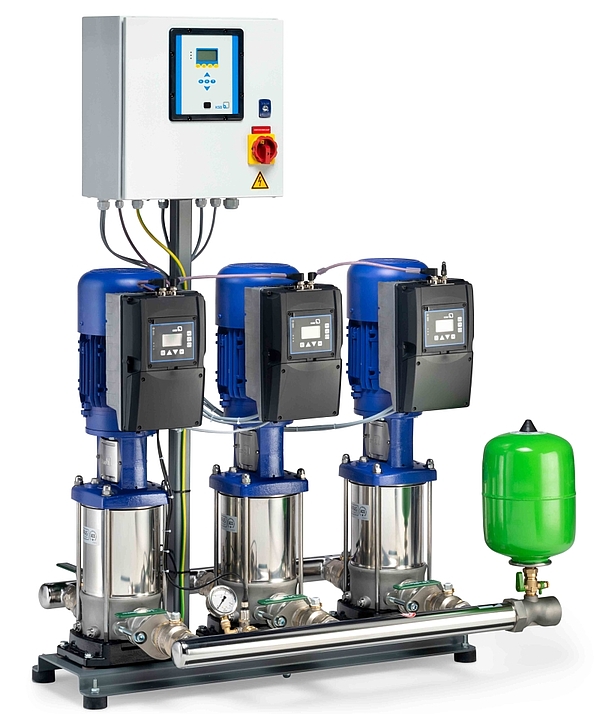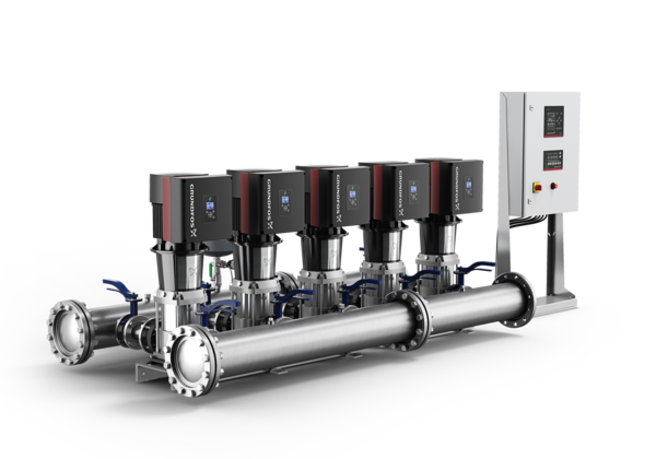 So ist eine vorgegebene Frischwasserzufuhr oder ein Hausanschluss mit einem Druck (x bar) durch eine solche Anlage auf einen Druck (y bar) umzuwandeln. Das Durchflussmaximum, der variable Förderstrom und Fluktuationen müssen beachtet werden. Durch den Einsatz einer Pumpensteuerung wird die Überwachung der Effizienz gesichert. In einem solchen intelligenten System und dem integrierten Kontrollmechanismus kann der Wirkungsgradbestpunkt herausgefunden werden und entschieden werden, wann die erste, zweite und dritte Druckerhöhungspumpe hinzugeschaltet oder abgeschaltet werden soll. Ein eingebauter Frequenzumrichter, misst den ausgangsseitigen Versorgungsdruck und Wasserdruck und gibt die Information an die Drehzahleinstellung weiter. Dieser variiert wiederum die Drehzahl der Pumpe und die damit einhergehenden Volumenströme des Wassers oder entsprechenden Mediums sowie den Ansaugprozess und den Ausgangsdruck.
